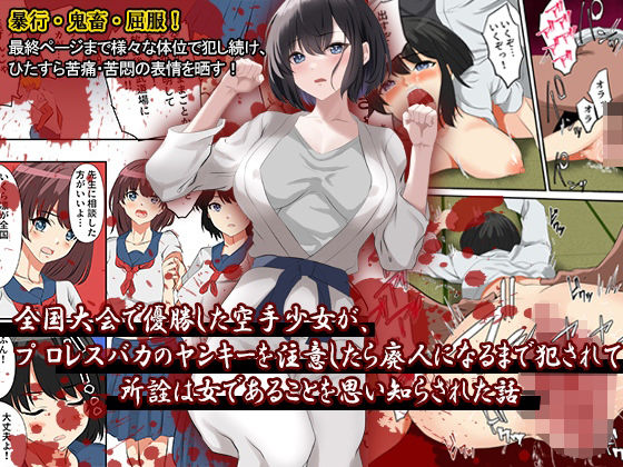 - 『全国大会で優勝した空手少女が、プロレスバカのヤンキーを注意したら廃人になるまで犯●れて、所詮は女であることを思い知らされた話』 は、どろろんコミックス先生による辱め 処女 巨乳 中出し 道着 少女 男性向け 成人向け 血液/流血 狂気ジャンルの注目作!