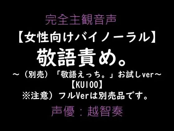 - 『【女性向けバイノーラル】敬語責め。〜敬語えっちお試しVer〜』 は、淫乱物語先生による音声付き 中出し 浮気 言葉責め 女性向け 成人向け ASMR バイノーラル ささやき 淫語 連続絶頂ジャンルの注目作!